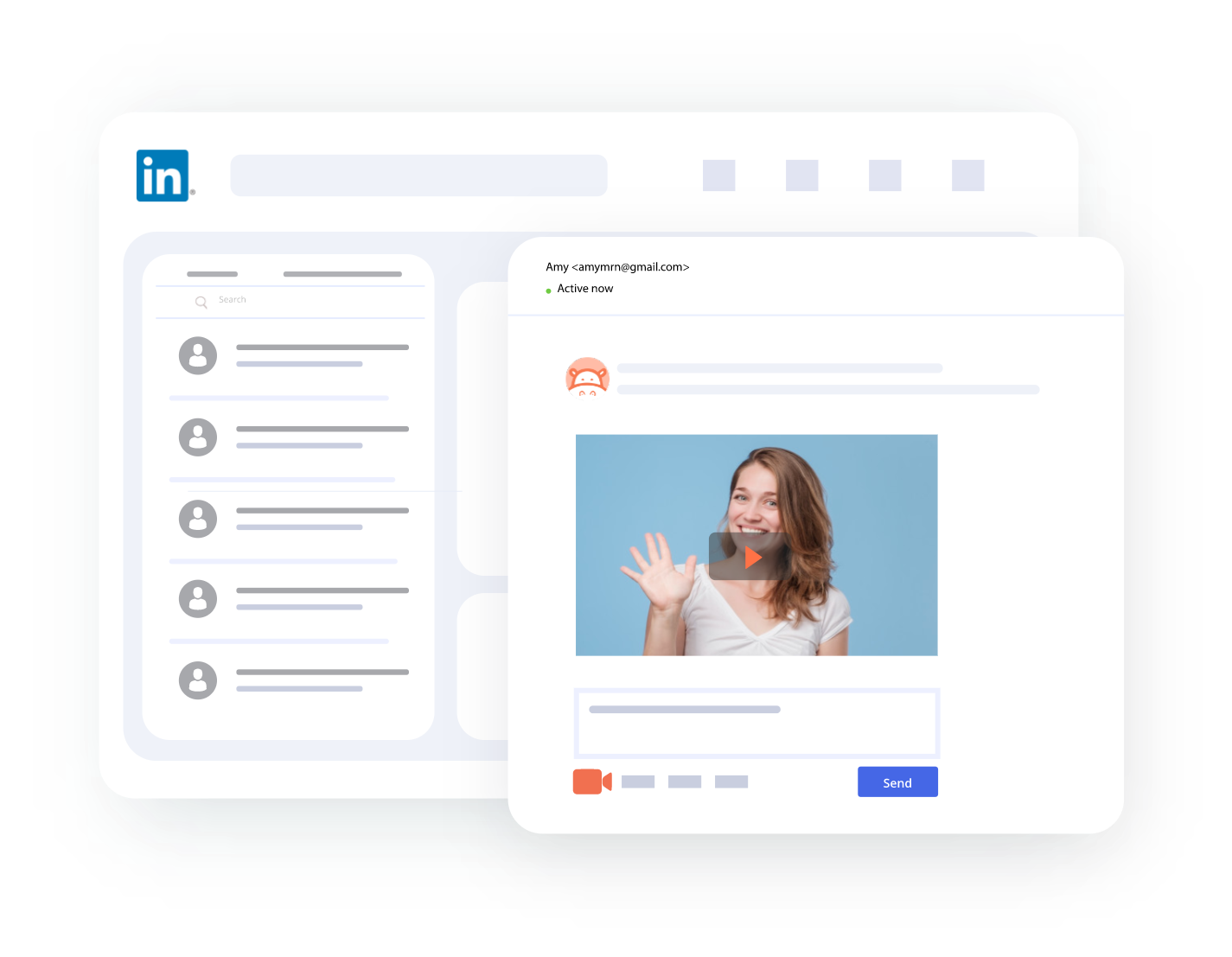 Easily record yourself, your screen, or upload, edit, and send out video emails directly from Linkedin & LinkedIn Sales Navigator. Add text, links, and interactive CTAs to let prospects book meetings directly from the video.